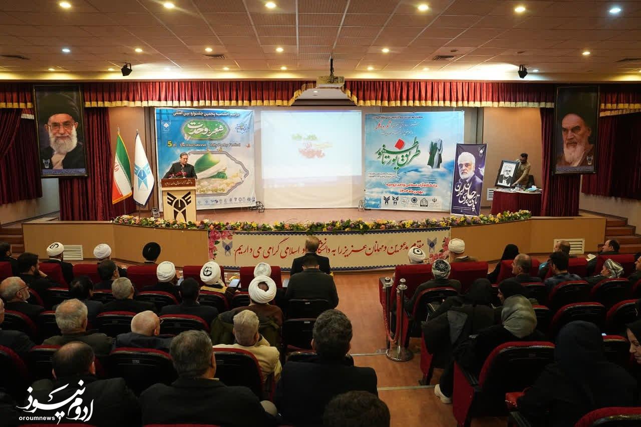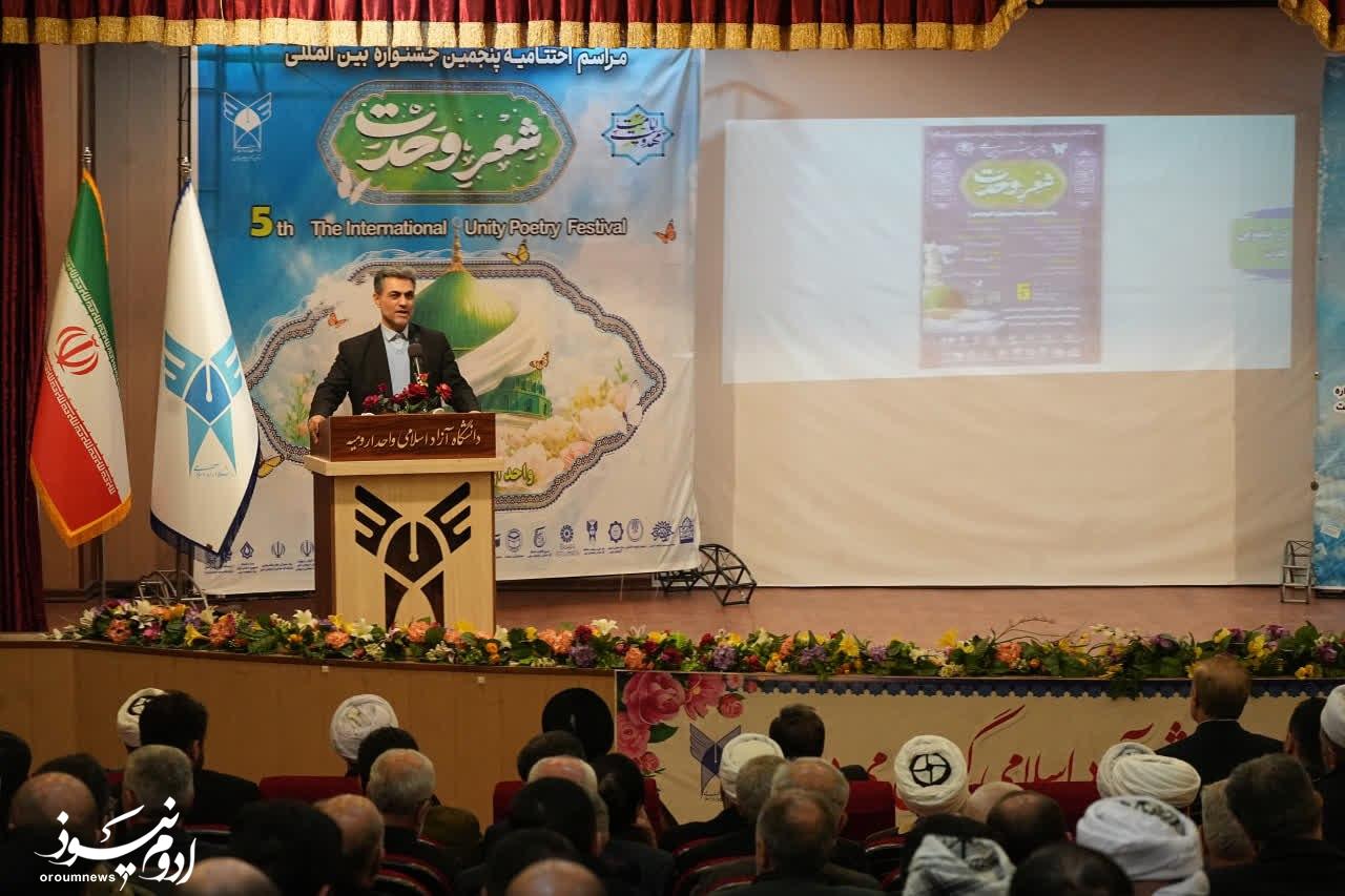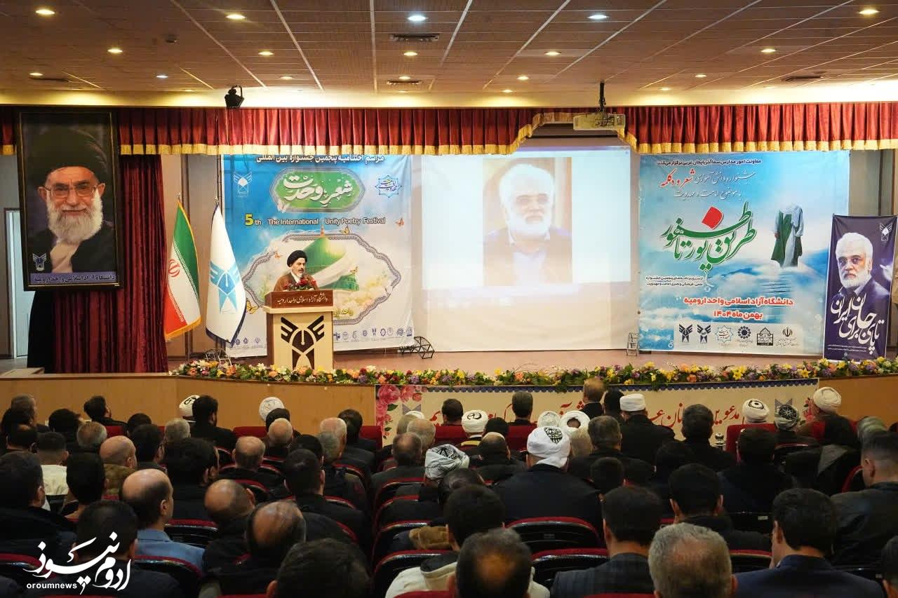 به گزارش خبرنگار گروه چند رسانه‌ای پایگاه خبری تحلیلی «اروم نیوز»، آئین اختتامیه جشنواره بین‌المللی شعر وحدت و جشنواره دانش‌آموزی «طریق نور تا ظهور»، امروز با حضور حجت‌الاسلام والمسلمین سیدمهدی قریشی نماینده ولی‌فقیه در استان، رضا رحمانی استاندار آذربایجان‌غربی، جمعی از مسئولان استانی، شاعران، هنرمندان و فرهیختگان فرهنگی در دانشگاه آزاد اسلامی ارومیه برگزار شد.