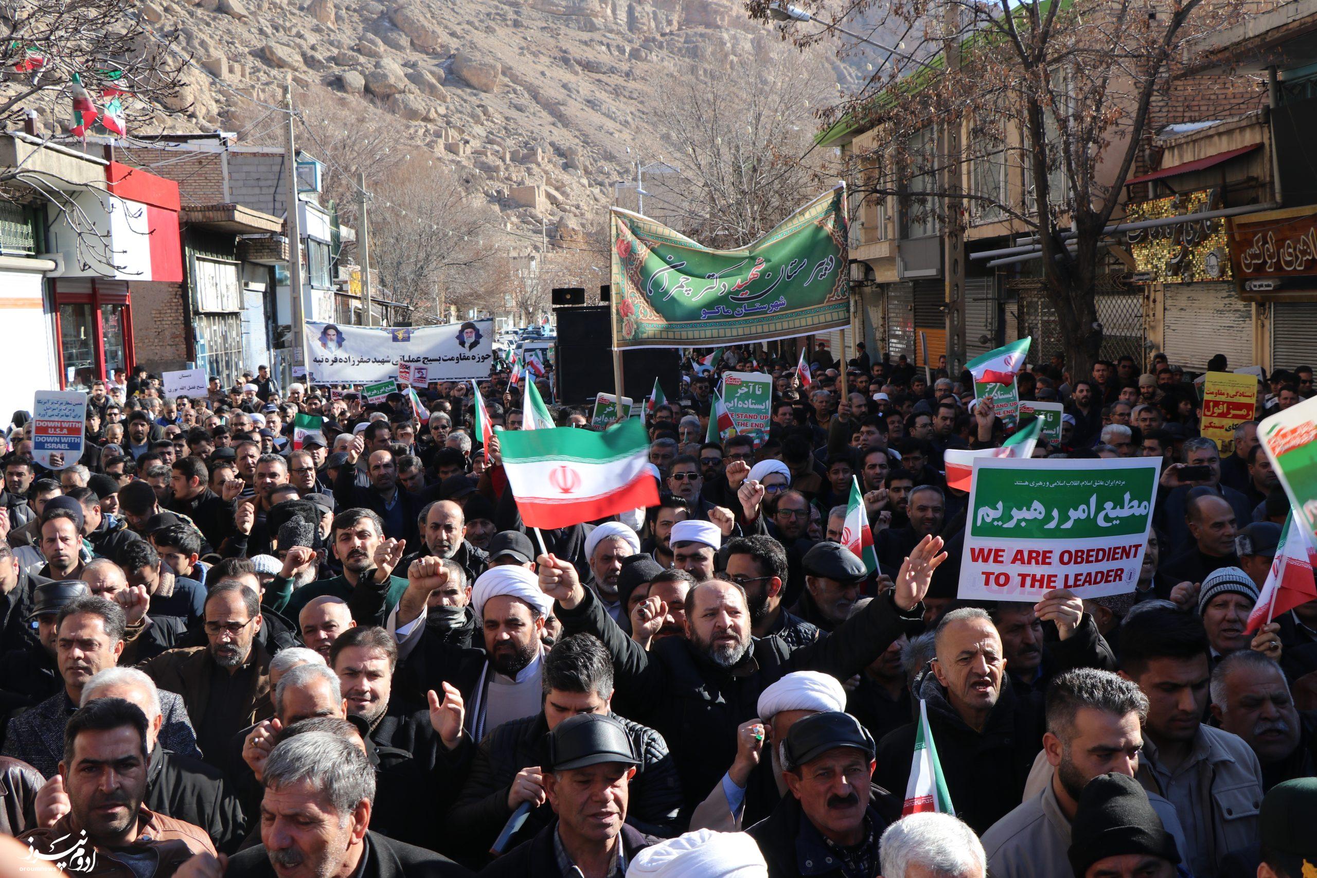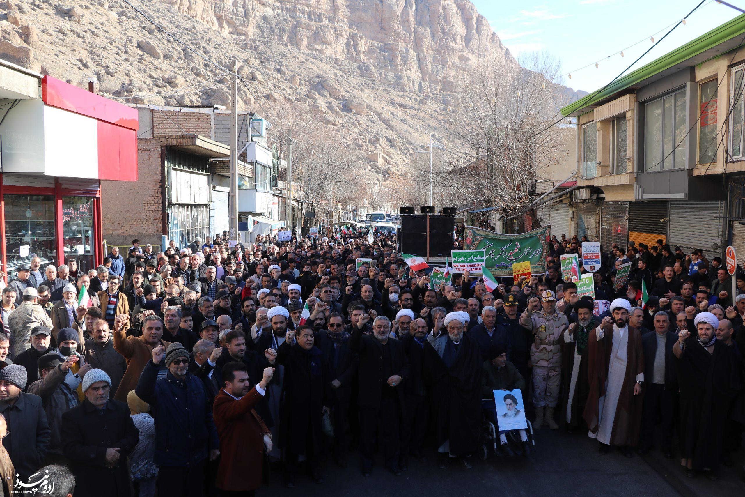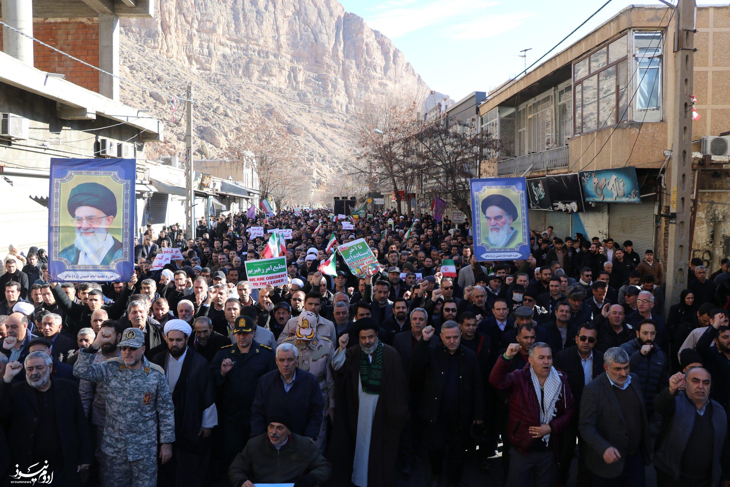 به گزارش خبرنگار گروه سیاسی پایگاه خبری تحلیلی «اروم نیوز»؛ راهپیمایی باشکوه محکومیت اغتشاشگران، تخریبگران و ترویست وابسته به عناصر آمریکا و صهیونیسم روز دوشنبه با حضور پرشور آحاد مردم مؤمن و ولایتمدار شهرستان ماکو برگزار شد.