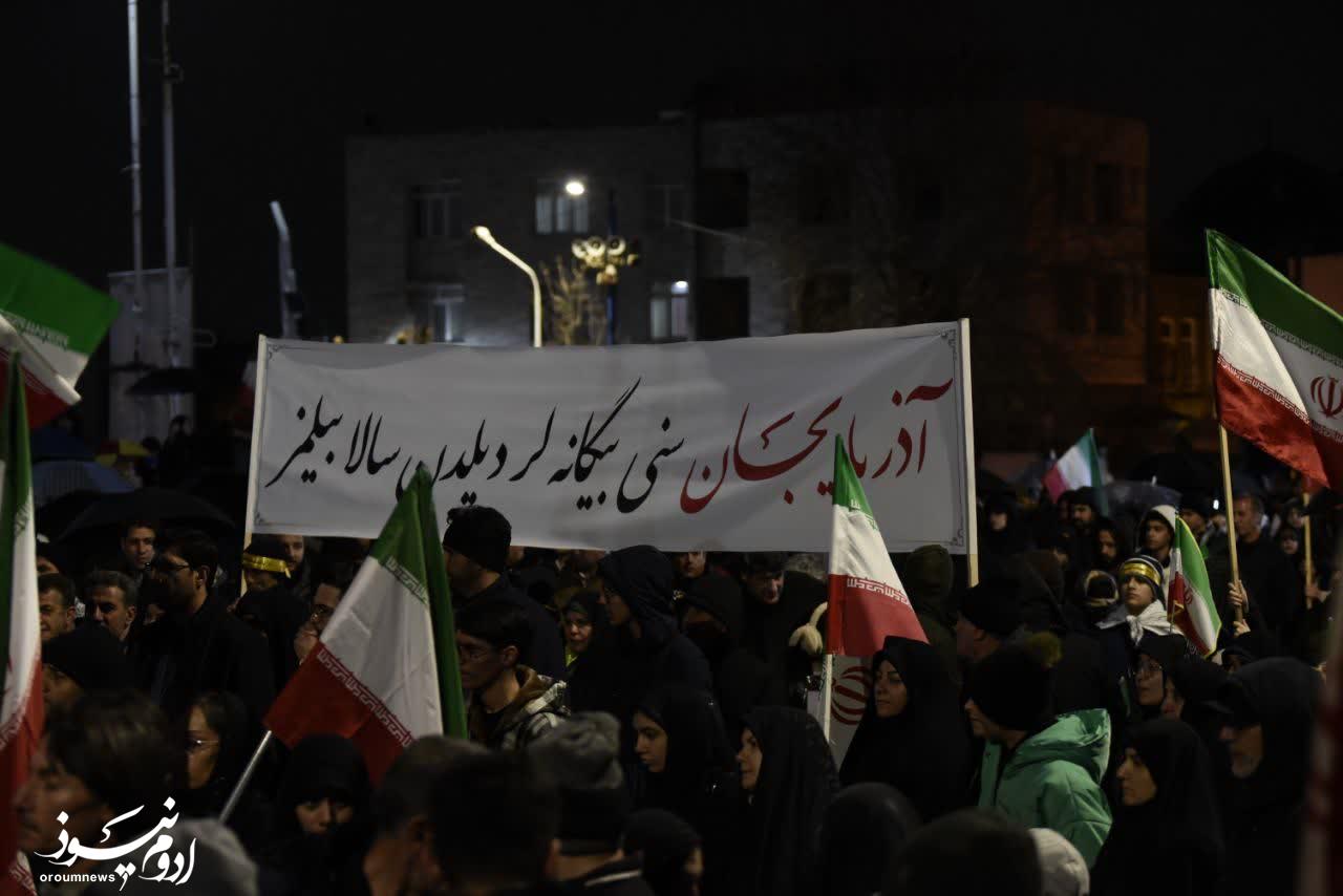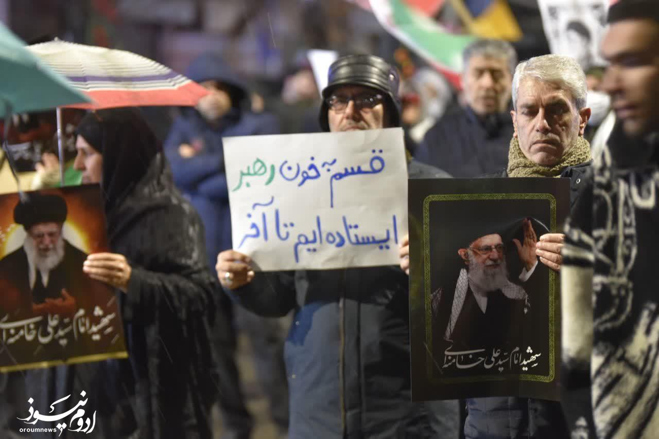 به گزارش خبرنگار گروه چند رسانهای پایگاه خبری تحلیلی «اروم نیوز»، مردم ولایتمدار ارومیه برای هشتمین شب متوالی در پی شهادت رهبر معظم انقلاب اسلامی به دست دشمن آمریکایی و صهیونیستی در میدان انقلاب این شهر تجمع کرده و ضمن عزاداری، فریاد انتقام سر دادند.