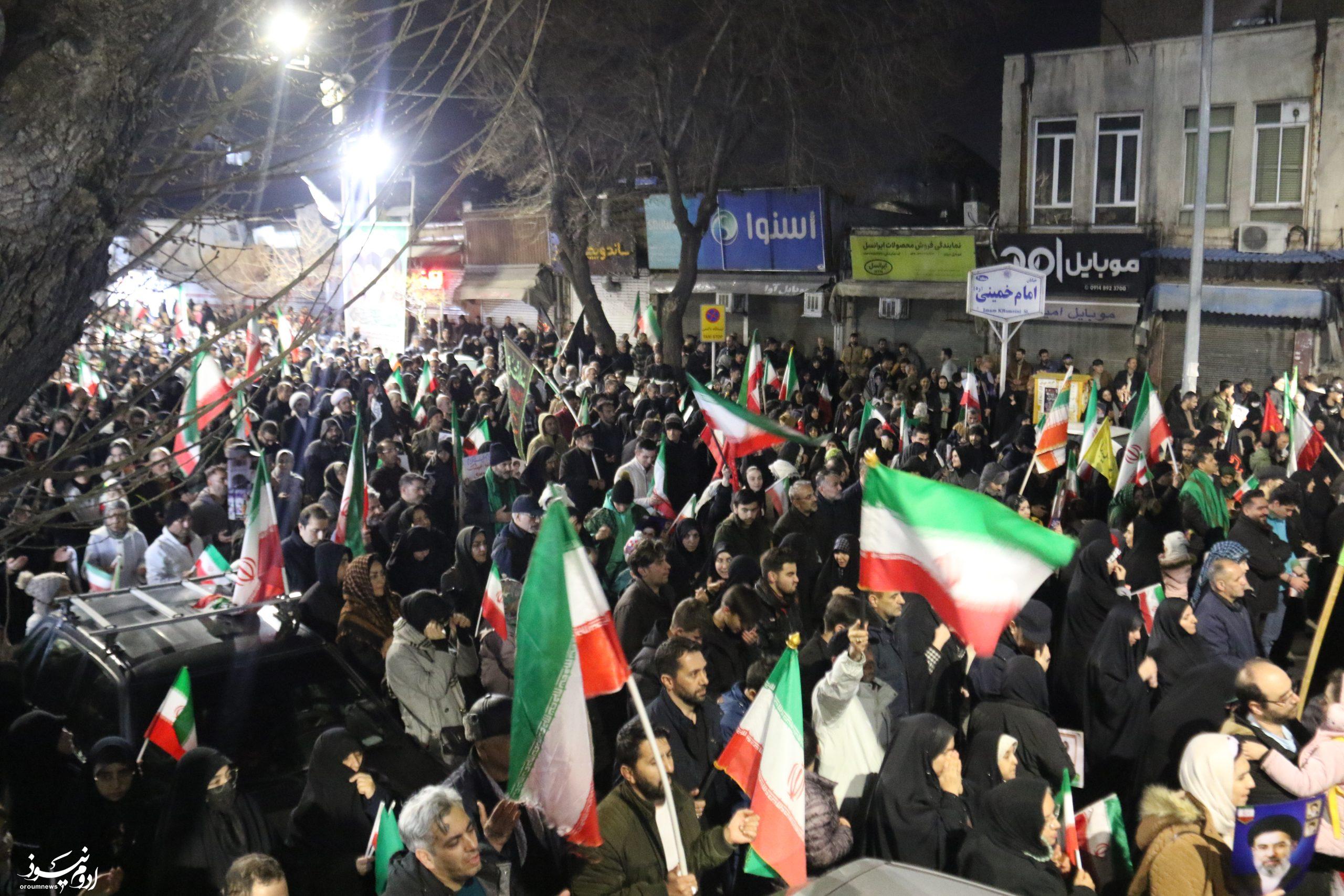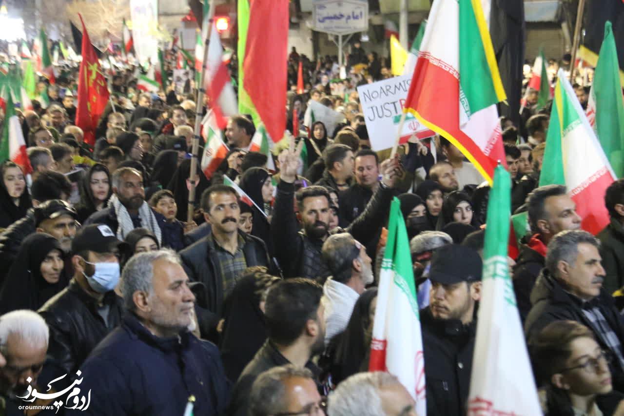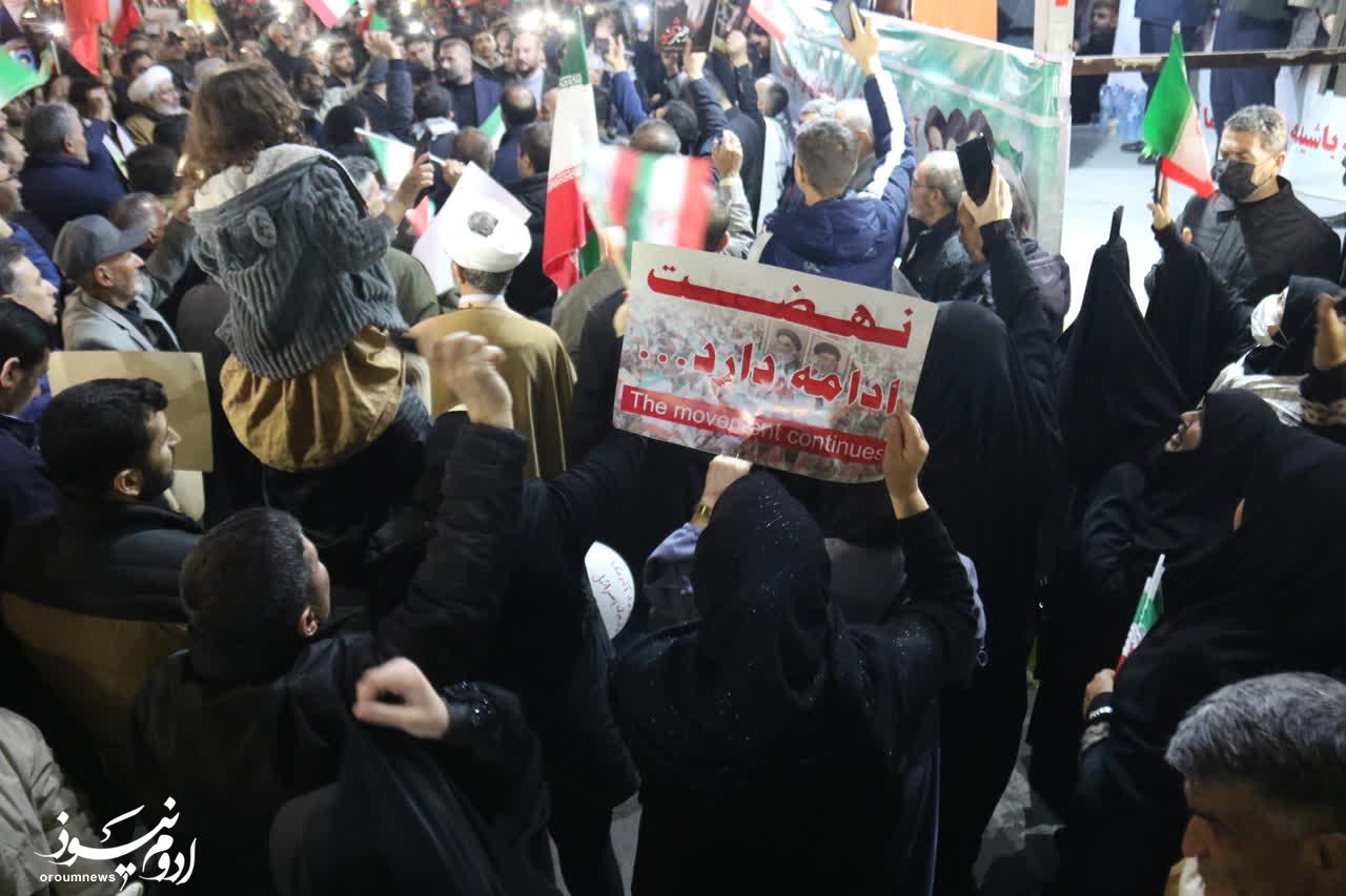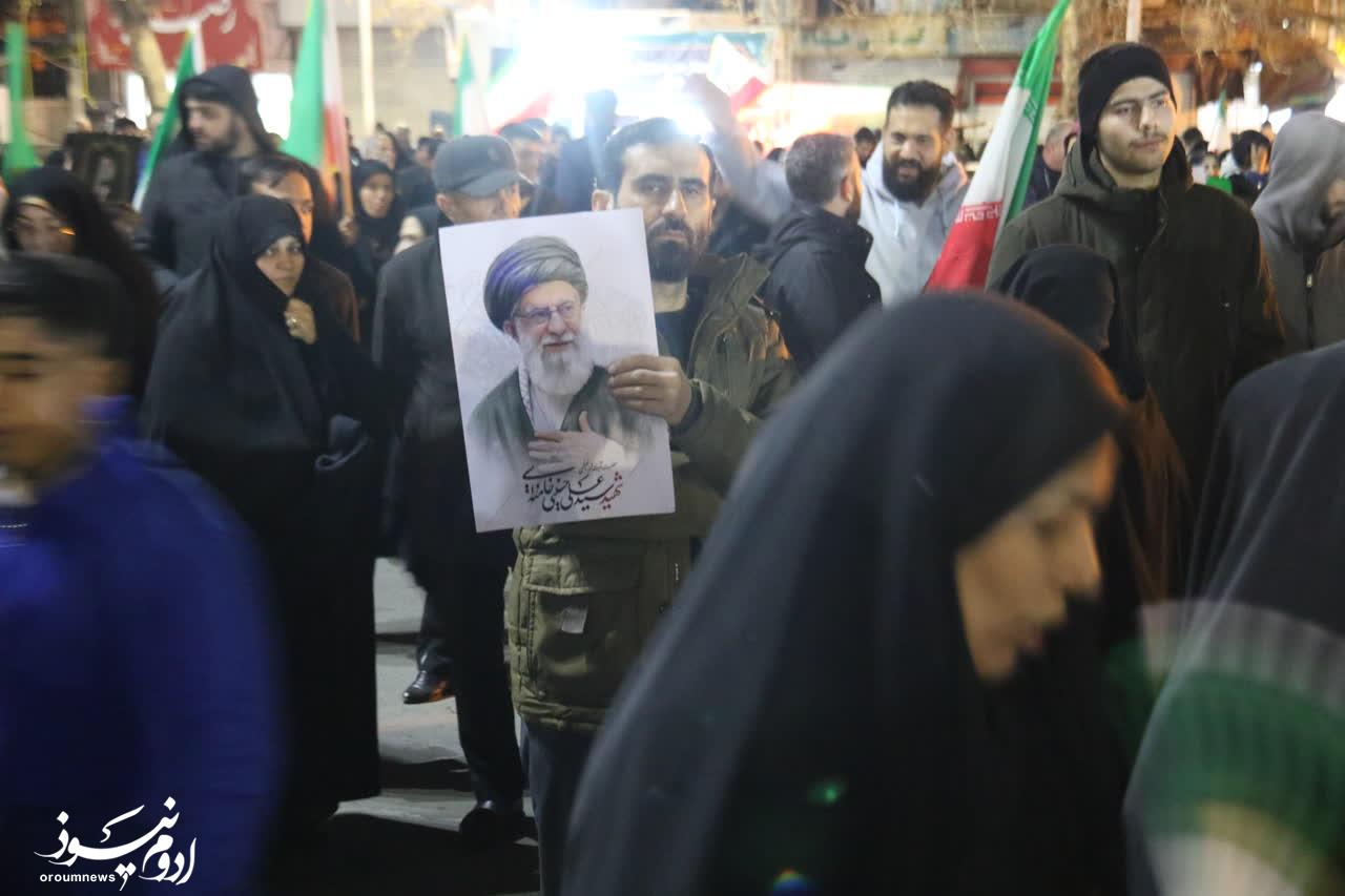 به گزارش خبرنگار گروه چندرسانهای پایگاه خبری تحلیلی «اروم نیوز»، تصاویری از تجمع شبانه مردم ارومیه در هفدهمین شب خونخواهی رهبر شهید انقلاب که به چهارشنبه سوری «دشمنسوز» در ارومیه تبدیل شد را در ادامه مشاهده میکنید.